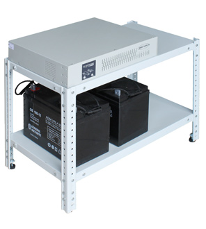 Металлический стеллаж для размещения АКБ и электрооборудования. Цвет светло-серый. Количество полок - 2 шт.. Высота – 500 мм. Ширина - 700 мм. Глубина - 400 мм. Допустимая распределенная нагрузка на каждую полку до 100 кг.