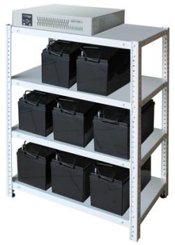 Металлический стеллаж для размещения АКБ и электрооборудования. Цвет светло-серый. Количество полок - 4 шт.. Высота – 1000 мм. Ширина - 700 мм. Глубина - 400 мм. Допустимая распределенная нагрузка на каждую полку до 100 кг.