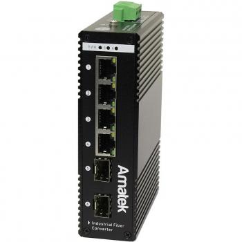Промышленный коммутатор на 6 портов (4 PoE+ порта + 2 слота SFP): 4 порта 10/100/1000M RJ-45 PoE/PoE+ (до 15.4/30 Вт каждый) + 2 порта 10/100/1000M SFP (Uplink). Поддержка PoE (IEEE 802.3af/at). Суммарная мощность PoE портов до 120Вт. Таблица MAC адресов 8192 (8K), скорость коммутационной матрицы 20 Гбит/с. Jumbo Frame 9К. MTBF 100 000 часов. Функция PoE Watchdog Грозозащита 6000В (ESD), от контактного разряда 8кВ, воздушного разряда 15кВ. Рабочая температура -40…+85°С, влажность: 5%~95%, без конденсата. 2 входа питания DC 44-56В (c PoE) / DC 12В (без PoE) Защита от переполюсовки питания. Корпус металлический с креплением на DIN-рейку 35мм, размеры 145x110x38мм, класс защиты IP40. Вес 0,85кг.