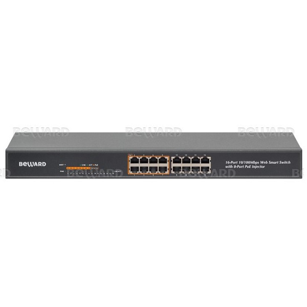 Управляемый коммутатор, 16 портов 10/100Мбит/с (из них 8 с поддержкой PoE), бюджет PoE до 110 Вт. Это позволяет подключить по PoE до 8 IP камер, Wi-Fi точек доступа, IP-телефонов (стандарта IEEE802.3af), а также до 8 сетевых устройств без поддержки PoE.