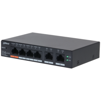 4-портовый PoE коммутатор с функцией облачного управления Порты: 4 RJ45 10/100Мбит/с (PoE/PoE+/Hi-PoE), 2 RJ45 10/100/1000Мбит/с (uplink); мощность PoE: порт 1 до 60Вт, порты 2~4 до 30Вт, суммарно до 60Вт; PoE watchdog, передача до 250м; питание: 53В(DC)