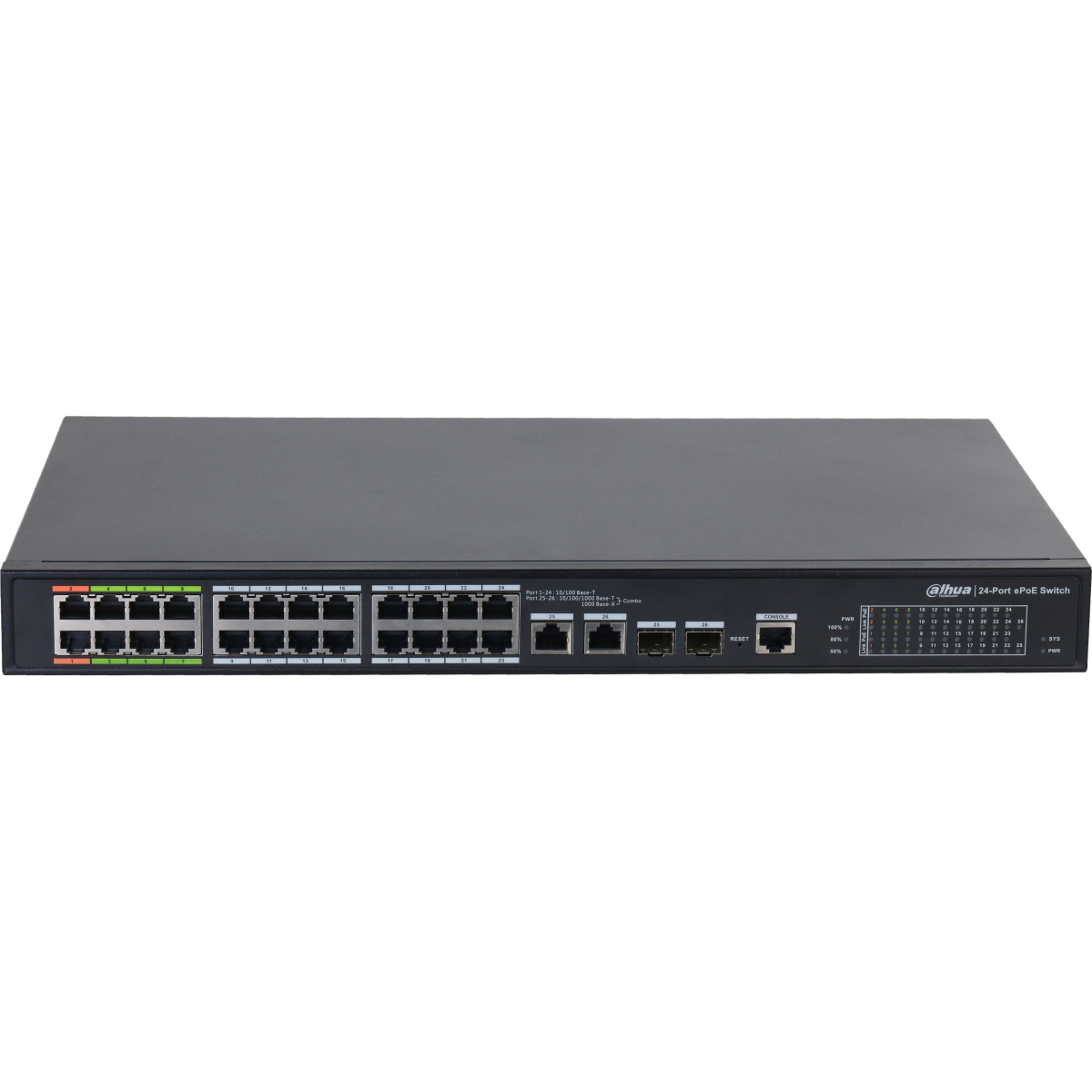 24 портовый ePoE коммутатор, управляемый, уровня L2. 2 порта х10/100/1000 Base-T. 2 комбо-порта x 1000 Base-T/Base-X. 24 порта x10/100 Base-T (8 ePoE+16 PoE). Мощность PoE портов: Порты 1,2≤60Вт, Остальные≤30Вт, Всего: ≤360Вт. Бюджет РОЕ: 360 Вт; IEEE802.3af, IEEE802.3at, Hi-PoE. Расстояние передачи до 800м по UTP.