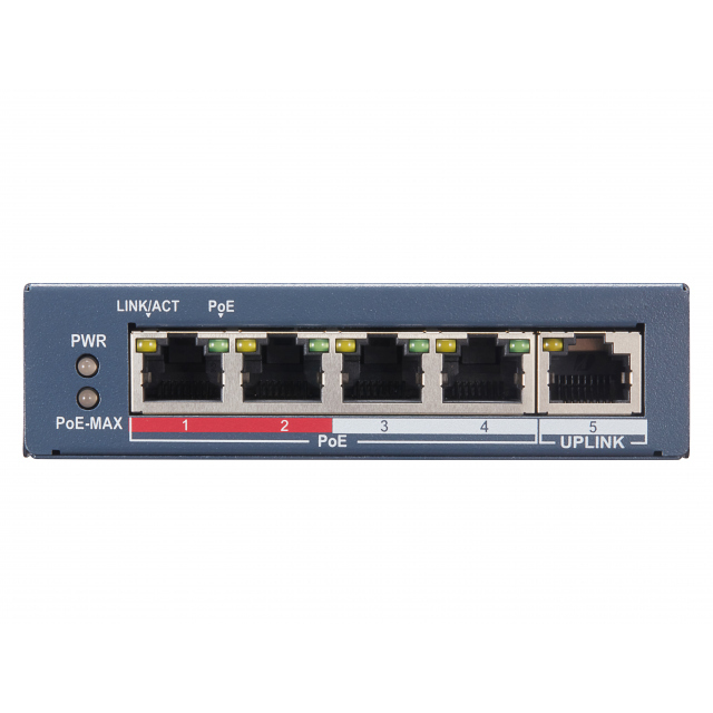 Сетевой неуправляемый коммутатор 4 RJ45 1000M PoE порта; 1 Uplink порт 1000М Ethernet; PoE: IEEE802.3af, IEEE802.3at; бюджет PoE 35Вт; поддержка режима передачи до 100м,10 Gbps, защита от перенапряжений, DC48В, 0.8A; 38Вт; -10 °C...+55°C.