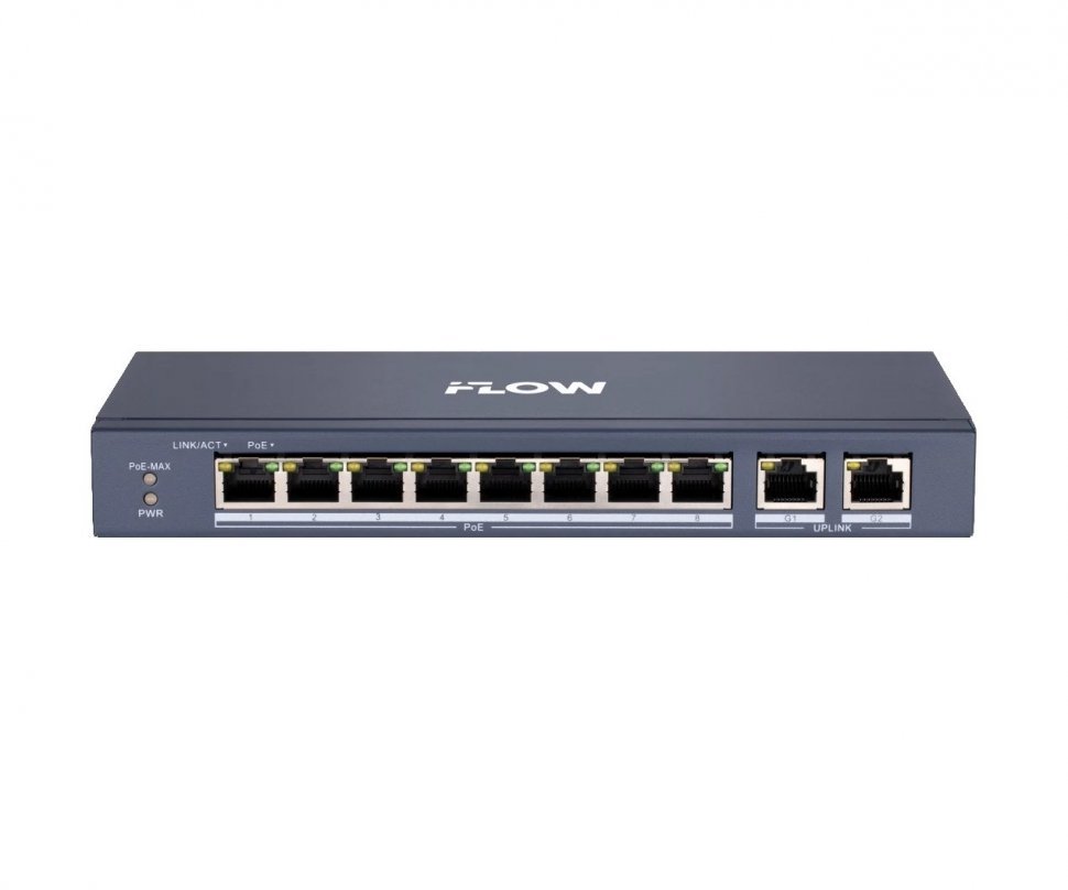 8 RJ45 100M PoE с грозозащитой 6кВ; 2 Uplink порт 1000М Ethernet; бюджет PoE 60Вт; поддерживают режим передачи до 300м, 10Мб/с, CAT6; таблица MAC адресов на 16000 записей; пропускная способность 5.6 Гб/с; стандарты PoE: IEEE802.3af, IEEE802.3at;48 VDC, 1.35 A; 0 °C...+40°C.