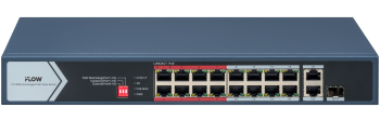 16 RJ45 100M PoE с грозозащитой 6кВ; 1 Uplink порт 1000М Ethernet; 1 Uplink порт 1000М SFP; бюджет PoE 130Вт; Порты 9-16 поддерживают режим передачи до 300м,10Мб/с, CAT6; таблица MAC адресов на 4000 записей; пропускная способность 7.2Гб/с; стандарты PoE: IEEE802.3af, IEEE802.3at;100~240 VAC, мас. 2.5 A; 0 °C...+45°C.