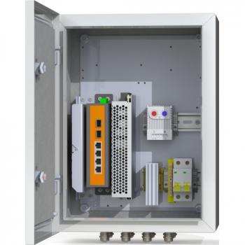 Предназначен для использования в любых климатических условиях на улице (-60°С +50°С) Степень пылевлагозащиты IP66. Корпус стальной 1,5 мм. Настенное крепление. Входное напряжение 220В Комплектация: Двухполюсный защитный автомат 6А - 1 шт.Обогреватель 50Вт - 1 шт. Сдвоенный термостат - 1 шт. Блок питания 150Вт -1 шт. Промышленный неуправляемый коммутатор 4*PoE 802.3 af/at, 2*SFP - 1 шт. Оптический кросс 4 порта SC - 1 шт. Гермовводы 4*PG9, 4*PG13,5 -1 комплект. Цвет ral 7035 (серый)