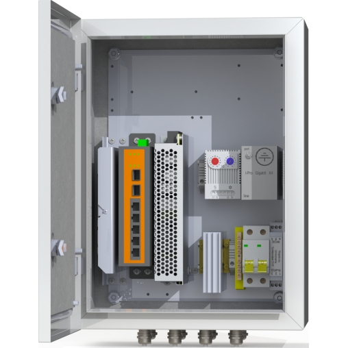 Предназначен для использования в любых климатических условиях на улице (-60°С +50°С) Степень пылевлагозащиты IP66. Корпус стальной 1,5 мм. Настенное крепление. Входное напряжение 220В Комплектация: Двухполюсный защитный автомат 6А - 1 шт.Обогреватель 50Вт - 1 шт. Сдвоенный термостат - 1 шт. Блок питания 150Вт -1 шт. Промышленный управляемый коммутатор 4*PoE 802.3 af/at, 2*SFP - 1 шт. Оптический кросс 4 порта SC - 1 шт. Устройство грозозащиты линии 220В -1 шт. Устройство грозозащиты линий PoE -1 шт. Гермовводы 4*PG9, 4*PG13,5 -1 комплект. Цвет ral 7035 (серый)