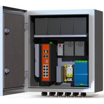 Предназначен для использования в любых климатических условиях на улице (-60°С +50°С) Степень пылевлагозащиты IP66. Корпус стальной 1,5 мм. Настенное крепление. Входное напряжение 220В Комплектация: Двухполюсный защитный автомат 6А - 1 шт.Обогреватель 50Вт - 1 шт. Сдвоенный термостат - 1 шт. Блок бесперебойного питания 300Вт -1 шт. Аккумулятор 12В, 7А/ч - 4 шт. Промышленный неуправляемый коммутатор 8*PoE 802.3 af/at, 2*SFP - 1 шт. Оптический кросс 4 порта SC - 1 шт. Устройство грозозащиты линии 220В -1 шт. Устройство грозозащиты линий PoE -2 шт. Гермовводы 4*PG9, 4*PG13,5 -1 комплект. Цвет ral 7035 (серый)