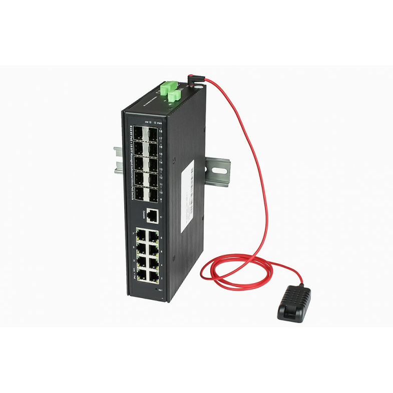 Промышленный управляемый (L2+) Ultra PoE коммутатор Gigabit Ethernet на 8GE PoE + 10 GE SFP порта с функцией мониторинга температуры/ влажности/ напряжения. Порты: 8 x GE (10/100/1000Base-T) с PoE BT (до 90W) + 10 x GE SFP (1000Base-X). Уровень управления L2+. Соответствует стандартам PoE IEEE 802.3af/at/bt. Автоматическое определение и режим антизависания PoE устройств. управление питанием. Суммарная мощность PoE до 720W. Поддержка режима CCTV: Увеличение расстояния передачи данных и питания до 250м. Встроенная система мониторинга температуры/ напряжения + внешний датчик температуры/ влажности. Выходы типа "Сухой контакт", Цифровой вход. Встроенная грозозащита 6кВ, электростатическая защита 8кВ. Питание: 2 x входа DC37-57V(735W). БП в комплект НЕ входит. Монтаж на DIN-рейку или на стену (крепление в комплекте). Размеры (ШхВхГ): 50х208х130мм. Вес: 1,5кг. Рабочая температура: -40…+80°С.