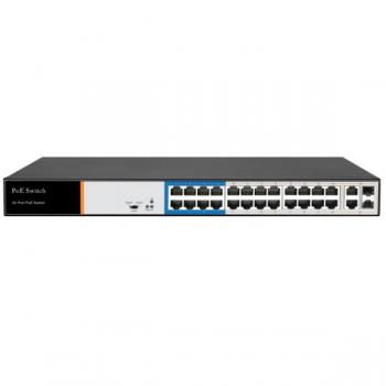 24 POE + 2 Uplink, из них: 24 POE порта 10/100Mbps RJ-45 с поддержкой Auto-MDIX, + 2 порта 1000Mbps RJ-45 Uplink или 2 порта Gigabit SFP, порты 1-8 имеют переключение режима Extend 10Mbps RJ-45 с поддержкой Auto-MDIX с длиной линии до 250 метров, на порт 48-53В DC, до 350мA Мах.15.4Вт(IEEE 802.3af), на порт 48-53 В DC,до 520mA Мах. 30Вт (IEEE 802.3at), контакты 1/2(+), 3/6(-), до 300 Вт, АС 100~240 В, 50/60Гц, Размер 440x180x44 мм.