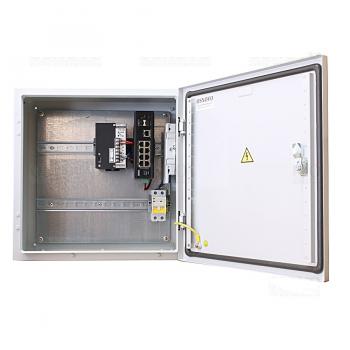 Уличный коммутатор на базе уличной станции OSNOVO OS-441. Порты: 6 x FE (10/100Base-T) с PoE (до 30W) + 2 x FE (10/100Base-T) с PoE (до 60W) + 1 x GE (10/100/1000Base-T) + 2 x GE SFP (1000Base-X). Режим антизависания и режим удлинения линий связи по 8-ми PoE портам до 250м (скорость до 10Мбит/с). Металлический шкаф (ШxВxГ): 400х400х210мм, питание AC100-240V, оптический кросс, температурный диапазон -40…+50гр., исполнение IP66.