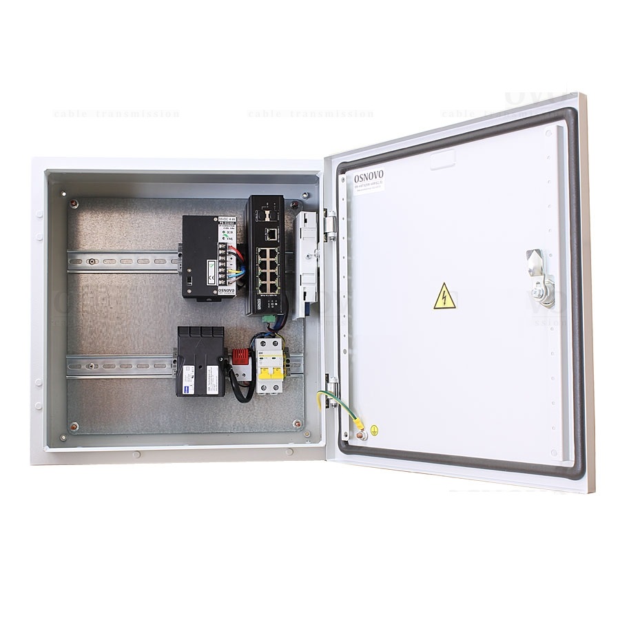 Уличный коммутатор с термостабилизацией на базе уличной станции OSNOVO OS-44T1. Порты: 6 x FE (10/100Base-T) с PoE (до 30W) + 2 x FE (10/100Base-T) с PoE (до 60W) + 1 x GE (10/100/1000Base-T) + 2 x GE SFP (1000Base-X). Режим антизависания и режим удлинения линий связи по 8-ми PoE портам до 250м (скорость до 10Мбит/с). Металлический шкаф (ШxВxГ): 400х400х210мм, питание AC100-240V, оптический кросс. Рабочая температура (температура окружающей среды): -50…+50°С, температура внутри станции 0…+55°С, исполнение IP66.
