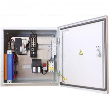 Уличный коммутатор в корусе из нержавеющей стали с термостабилизацией и резервным питанием на базе уличной станции OSNOVO OSS-44TB1. Порты: 6 x FE (10/100Base-T) с PoE (до 30W) + 2 x FE (10/100Base-T) с PoE (до 60W) + 1 x GE (10/100/1000Base-T) + 2 x GE SFP (1000Base-X). Режим антизависания и режим удлинения линий связи по 8-ми PoE портам до 250м (режим CCTV, скорость до 10Мбит/с). Нержавеющий шкаф (ШxВxГ): 400х400х210мм, питание AC100-240V. АКБ 48В(2,2Ач)), оптический кросс, исполнение IP66. Материал: нержавеющая сталь. Рабочая температура (температура окружающей среды): -60…+50°С, температура внутри станции -10…+55°С.