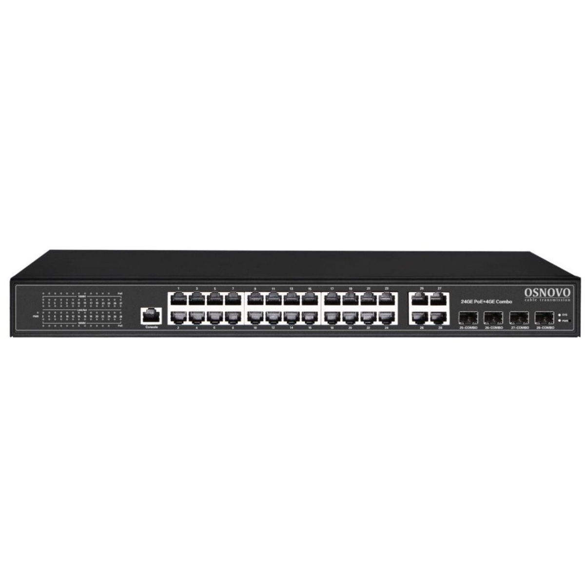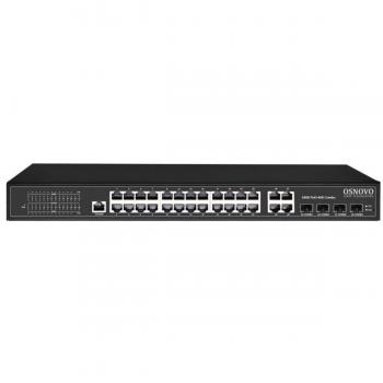 Управляемый L2 PoE коммутатор Gigabit Ethernet на 24 RJ45 PoE + 4 x GE Combo Uplink порта. Порты: 24 x GE (10/100/1000 Base-T) с поддержкой PoE (IEEE 802.3af/at), 4 x GE Combo Uplink (RJ45 + SFP). Соответствует стандартам PoE IEEE 802.3af/at. Автоматическое определение PoE устройств. Мощность PoE на порт - до 30W. Суммарная мощность PoE до 400W. Встроенная грозозащита 3kV на порт. Питание: AC100-240V (415W). Встроенный БП. Монтаж в 19 - дюймовую стойку, крепление в комплекте. Размеры (ШхВхГ): 440 x 45 x 290мм. Рабочая температура: -10…+55°С.