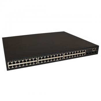 Управляемый L2 PoE коммутатор Gigabit Ethernet на 48 RJ45 PoE + 4 x GE SFP порта. Порты: 48 x GE (10/100/1000 Base-T) с поддержкой PoE (IEEE 802.3af/at), 4 x GE Uplink. Соответствует стандартам PoE IEEE 802.3af/at. Автоматическое определение и режим антизависания PoE устройств. Мощность PoE на порт - до 30W. Суммарная мощность PoE до 800W. Встроенная грозозащита 3kV на порт. Питание: AC100-240V (830W). Встроенный БП. Монтаж в 19 - дюймовую стойку, крепление в комплекте. Размеры (ШхВхГ): 440 x 45 x 360мм. Рабочая температура: 0…+55°С.