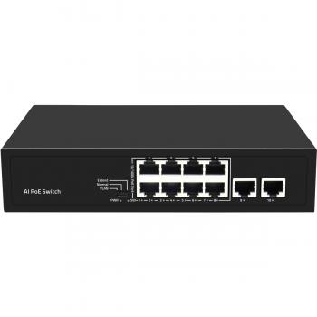 Неадминистрируемый коммутатор, 8 RJ-45 POE портов (10/100 Мбит/с), 2 RJ-45 Uplink порта (10/100 Мбит/с), бюджет на порт до 30 Вт, общий бюджет до 120 Вт.