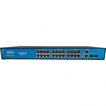 Источник питания ST-S240POE (2G/2S/300W/А) PRO, (версия 4) , Switch POE 24-х портовый для обеспечения проводных сетей напряжением 48В , PoE порты: 24 х (10/100 Мбит/с), UpLink порты: 2 х(10/100/1000 Мбит/с), SFP порты: 2 х (10/100/1000 Мбит/с), Max.пропускная сп-ть: 100 Мбит/канал (PoE порты), 1000Мбит/канал (UpLink и SFP порты), Р(ном) каждый порт (Вт): 12,5 Вт, Р(макс) каждый порт (Вт): 30 Вт, Тип РоЕ: А, защита от КЗ, AI PoE, VLAN, Грозозащита.