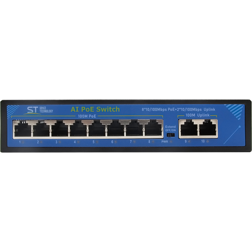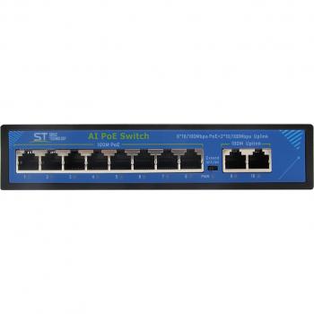 ST-S85POE (2M/120W/А) PRO, (версия 4), Switch POE 8-ми портовый для обеспечения проводных сетей напряжением 48В , PoE порты: 8 х (10/100 Мбит/с), UpLink порты: 2 х (10/100 Мбит/с), SFP порты: нет, Max.пропускная сп-ть: 100 Мбит/канал, Р(ном) каждый порт (Вт): 15 Вт, Р(макс) каждый порт (Вт): 30 Вт, Тип РоЕ: А, защита от КЗ, Extend 250м., AI PoE, AI VLAN, Грозозащита.