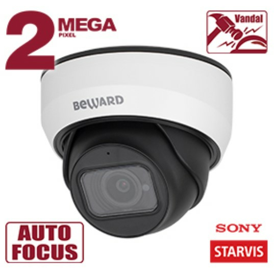 2 Мп, 1/2.8' КМОП Sony Starvis, 0.002 лк (день)/0.001 лк (ночь), 2xWDR до 120 дБ, 3 потока H.265/Н.264 HP/MP/BP, MJPEG, 30к/с, 1920x1080, моторизованный объектив 2.7-13.5, автофокус, АРД, электромеханический ИК-фильтр, ИК-подсветка (до 50 м), 12B/PoE, microSDXC (до 256 ГБ), IK10, IP67, от -40 до +60°С, встроенная видеоаналитика, SIP.