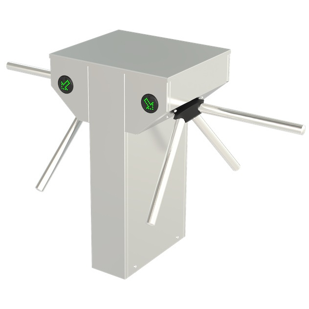Турникет-трипод моторизованный двухпроходный. Корпус и преграды из нержавеющей стали AISI 304. Оснащен платой управления и светодиодными указателями прохода. Стержни-барьеры с электродоводкой, автоматической системой антипаники и автоматическим поднятием штанг. Встроенный блок питания. IP54.