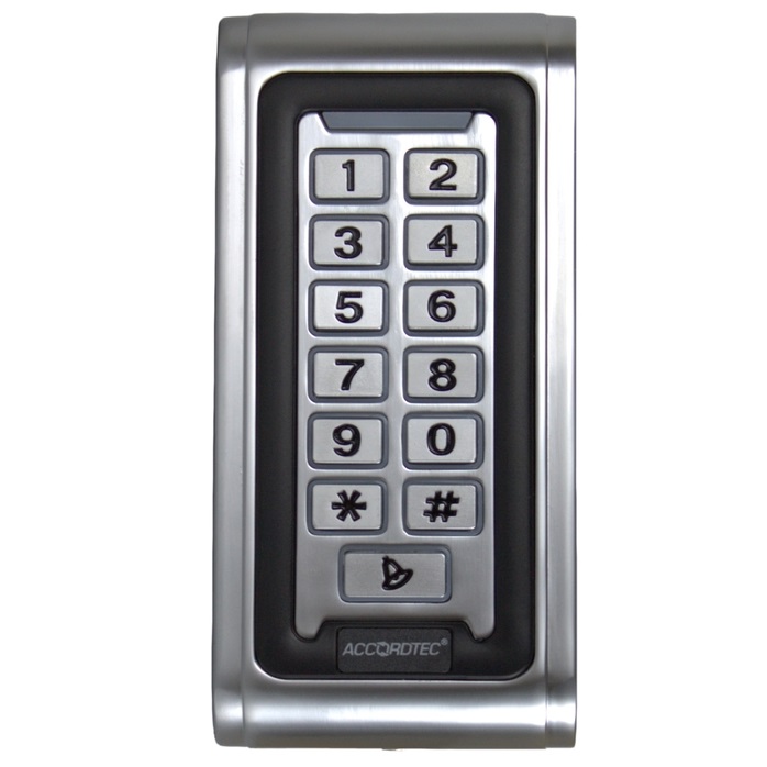 Кодовая панель со встроенным считывателем карт Mifare, питание DC 12V, IP68,антивандальный корпус,материал-нержавеющая сталь, подсветка кнопок.Рабочая температура:- 45°С~+ 60°С, 119x57x20 мм, Масса брутто 545 г.