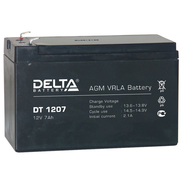 Свинцово-кислотный аккумулятор. Номинальное напряжение 12 В 7 Ач. Предназначен для использования в охранно-пожарных системах безопасности, а также для применения в системах контроля и управления доступом.