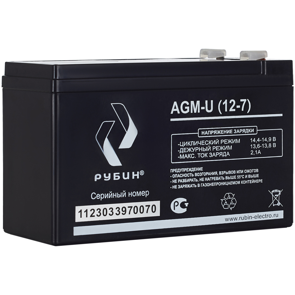 Высокачественный специализированный аккумулятор для систем бесперебойного питания (UPS), пожарных и охранных сигнализаций, телекоммуникационного оборудования и др. Аккумулятор Рубин AGM-U (12-7) относится к классу герметичных необслуживаемых AGM-батарей (электролит, абсорбированный в стекловолоконном сепараторе) с системой рекомбинации газов (VRLA). Аккумулятор предназначен для работы как в циклическом, так и буферном режиме и способен выдерживать глубокие разряды (до 10-15%). Легированные кальцием свинцовые пластины обеспечивают низкий саморазряд (<3%/мес) и высокую конструктивную прочность решетки, позволяющую выдерживать в 2-3 раза больше циклов разряда-заряда (до 1000 циклов) и обеспечивающую длительный срок службы (6-8 лет) без существенной потери ёмкости. Качество, надежность, продолжительный срок службы и привлекательная цена выгодно отличают аккумуляторы Рубин AGM-U (12-7) и делают их оптимальным по соотношению цена/качество при выборе аккумуляторов для систем бесперебойного питания.