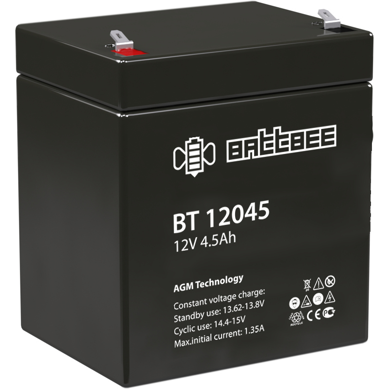 АКБ. Номинальное напряжение: 12 B. Срок службы: 3 года. Напряжение: 12. 20 часовой разряд: 4.5 Ач. Саморазряд: 3 % емкости в месяц при 25°С