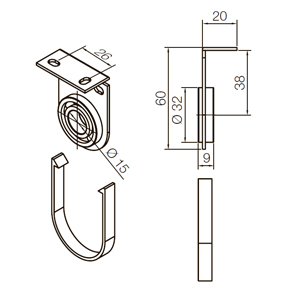 Проходное крепление, расстояние до оси вращения 40 мм, должно комплектоваться гильзами 575.24800.