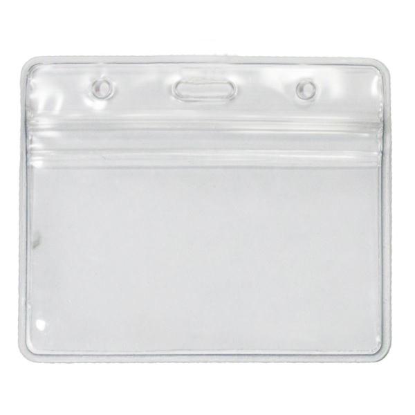 Бейдж для проксимити карт повышенной прочности с отверстием для ремешка, прозрачный, горизонтальный, размеры 101х83 мм.