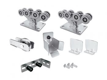 Масса ворот до 700 кг. Состав комплекта: 1710043 Тележка ME с 8 роликами (2шт.), ролик концевой, улавливатель конц. ролика, заглушка для рельса (2шт.), скоба направляющая FRM 2 с 2 роликами, винты М10х25 (15шт.) - 1 компл. 1700011 STAGE MB 6 - Рельс направляющий "M", неоцинкованный - 6 м.