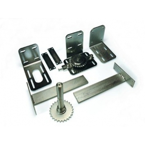 Система ручного открывания/закрывания откатных ворот с валом и зубчатым колесом Z = 26 для полого вала привода, натяжки цепи, анкерными болтами для крепления двигателя и кронштейнами для крепления створки.