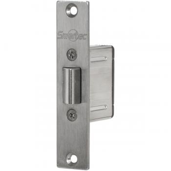 Ответная часть к электромеханической защелке. Ответная часть врезается в дверное полотно. Благодаря такому способу монтажа комбинация из защелки и ответной части ST-SL121DL не нарушает дизайн двери и прекрасно подходит для ситуаций, когда системой контроля доступа оснащается уже эксплуатирующийся объект, где двери снабжены механическими замками. Такое решение позволяет минимизировать затраты на СКУД и на конструктивную доработку дверей.