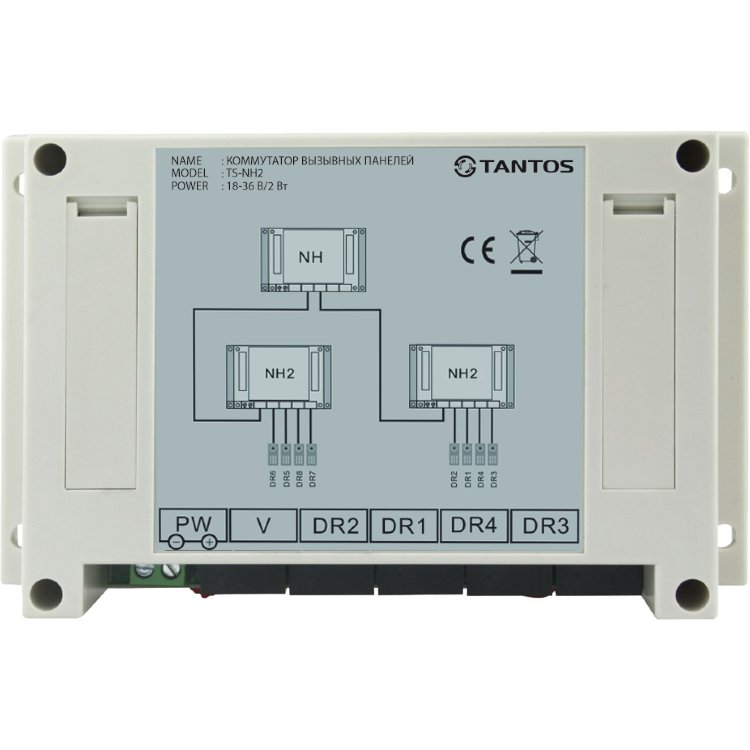 Коммутатор вызывных панелей. Простая установка на DIN-рейку. Простое подключение с помощью разъемов RJ-45 (подключение по стандарту T568B). Все соединения в системе производятся кабелем UTP 5 категории.