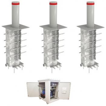 Блокиратор автоматический выдвижной серии RBD Reinforced усиленный K4. В комплекте 3 болларда, шкаф управления с рукавом высокого давления 10 метров и межблочными рукавами 1,2 метра, ручной аварийный насос. Столбы оборудованы зуммером и светодиодной индикацией. Разработан и изготовлен в соответствии с IWA 14-1: N3C / 7200 / 48 km/h (30 mph), PAS68: N3 / 7500 / 48 km/h (30 mph) и ASTM F2656 M, C7 (K-8) / 6800, 7200 / 48 km/h (30 mph).