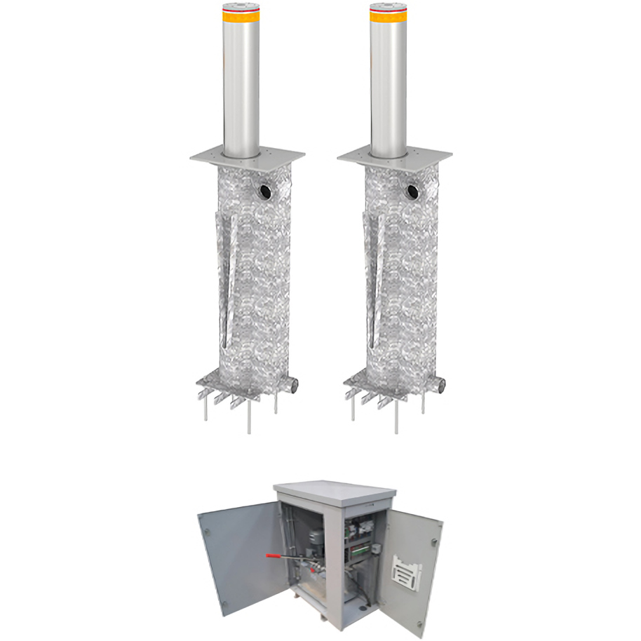 Блокиратор автоматический выдвижной серии TBD Traffic Regulation. В комплекте 2 болларда, шкаф управления с рукавом высокого давления 10 метров, межблочным рукавом 1,2 метра и клапаном аварийного опускания преграды. Столбы из нержавеющей стали оборудованы зуммером, светодиодной индикацией и рубашкой из нержавеющей стали.