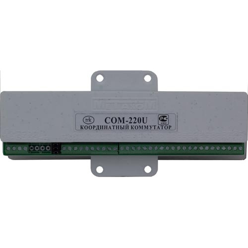 Коммутатор координатный COM-220U предназначен для коммутации абонентских линий в домофонных системах на базе вызывных панелей МЕТАКОМ и рассчитан на подключение до 220-ти абонентов.
