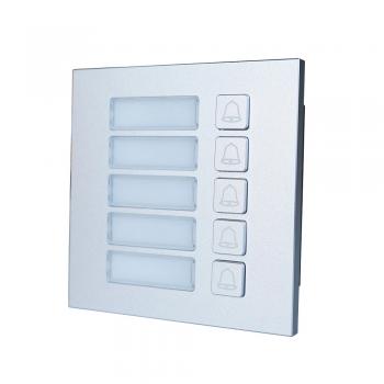 Вызывной модуль с 5-ю кнопками Материал: Металл; Питание DC 5В; Рабочая температура: -30°C~+60°C; Габаритные размеры: 100мм × 100 мм × 31 мм