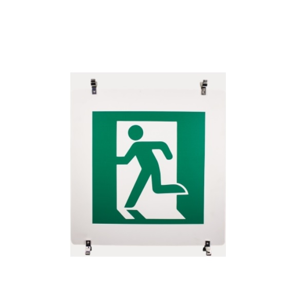 Табличка с креплением для поворотной створки TSb-K. Изготовлена из пенокартона. С одной стороны нанесено изображение знака "Стоп", с другой стороны изображение бегущего зеленого человека.