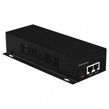 PoE-инжектор IEEE 802.3af/at/bt. Мощность PoE - до 90Вт. Поддержка PoE (IEEE 802.3af/at/bt) – 52В / 90Вт. Соответсвует стандарту PoE IEEE 802.3af/at/bt. Порты: вход. - RJ45(10/100/1000 Base-TX), выход. - RJ45(PoE). Индикация: 220В, уровень мощности. Защита портов от электростатического разряда (ESD): общее напряжение до 6кВ, дифференциальное 2кВ, контактного разряда до 6кВ, воздушного разряда до 8кВ. Средняя наработка на отказ (MTBF) до 100 000 часов. Распределение контактов PoE: V+ (pin1/2/4/5), V-(pin3/6/7/8). Металлический корпус, IP20, Размеры 187x92x40 мм. Питание: AC100-240V. Температура -20..+50°C
