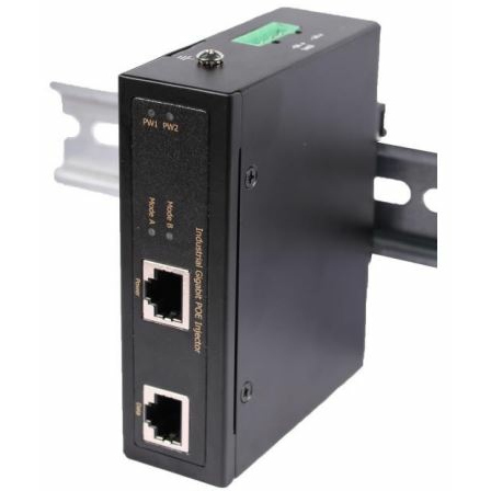 Промышленный гигабитный PoE-инжектор. Соответствует стандартам PoE IEEE 802.3af/at. Автоматическое определение PoE устройств. Мощность PoE - до 30W. Поддержка скорости 10/100/1000Base-T. вх. - RJ45 (10/100/1000 Base-T), вых. - RJ45(10/100/1000 Base-T, PoE, IEEE 802.3af/at). Размеры: 103,5x32x81,5мм. Металлический корпус, Монтаж на DIN-рейку. Питание DC48-56V. Рабочая температура -40 ... +75 гр. С.