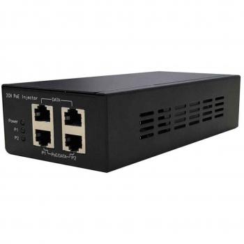 PoE-инжектор Gigabit Ethernet на 2 порта. Соответствует стандартам PoE IEEE 802.3af/at. Автоматическое определение PoE устройств. Мощность PoE на порт - до 30W. Суммарная мощность PoE - до 60W. Вх. - 2 x RJ45 (10/100/1000 Base-T), вых. - 2 x RJ45(10/100/1000 Base-T, PoE, IEEE 802.3af/at). Питание: AC100-240V. Встроенный БП. Размеры(ШхВхГ): 83x44x172мм. Рабочая температура: -10...+45 гр. C