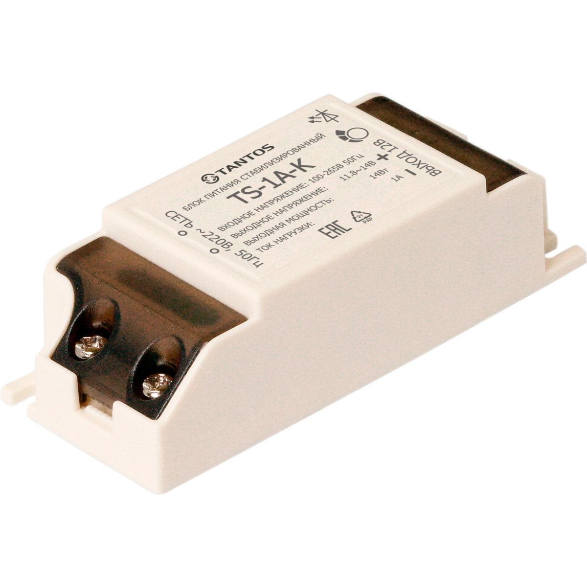 TS-1A-K Блок питания стабилизированный, 12В; 1А; 100-265В 50Гц, пластиковый корпус.