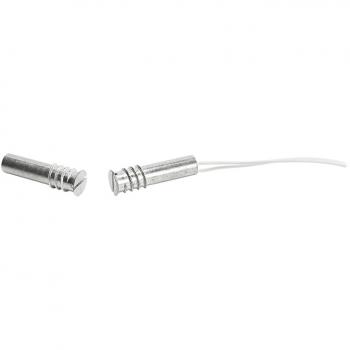 Магнитоконтактный извещатель врезной в алюминиевом корпусе, монтаж ввертыванием, кабель 36 см. Тип извещателей NC, максимальное коммутируемое напряжение геркона U max гер.= 20 В, максимальный ток I max = 20 mA, минимальное количество переключений при нагрузке 20 В, 20 mA - 360 000, расстояние замыкания контактов геркона: 15 мм, расстояние размыкания контактов геркона: 24 мм, размеры (мм): Ø 8,5, длина 33,1. Диапазон рабочих температур - 30°C...+ 65°C.