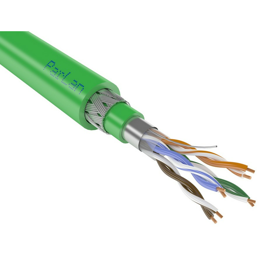 Кабель симметричный парной скрутки в экране из алюмополимерной ленты, в огнестойкой оболочке из низкотоксичного ПВХ пластиката пониженной пожарной опасности с низким дымо- и газовыделением, не распространяющего горение при групповой прокладке по категории А, в защитном шланге из низкотоксичного ПВХ пластиката пониженной пожарной опасности с низким дымо- и газовыделением, cat5e, 2х2х0.52, t-раб.-40…+70°С