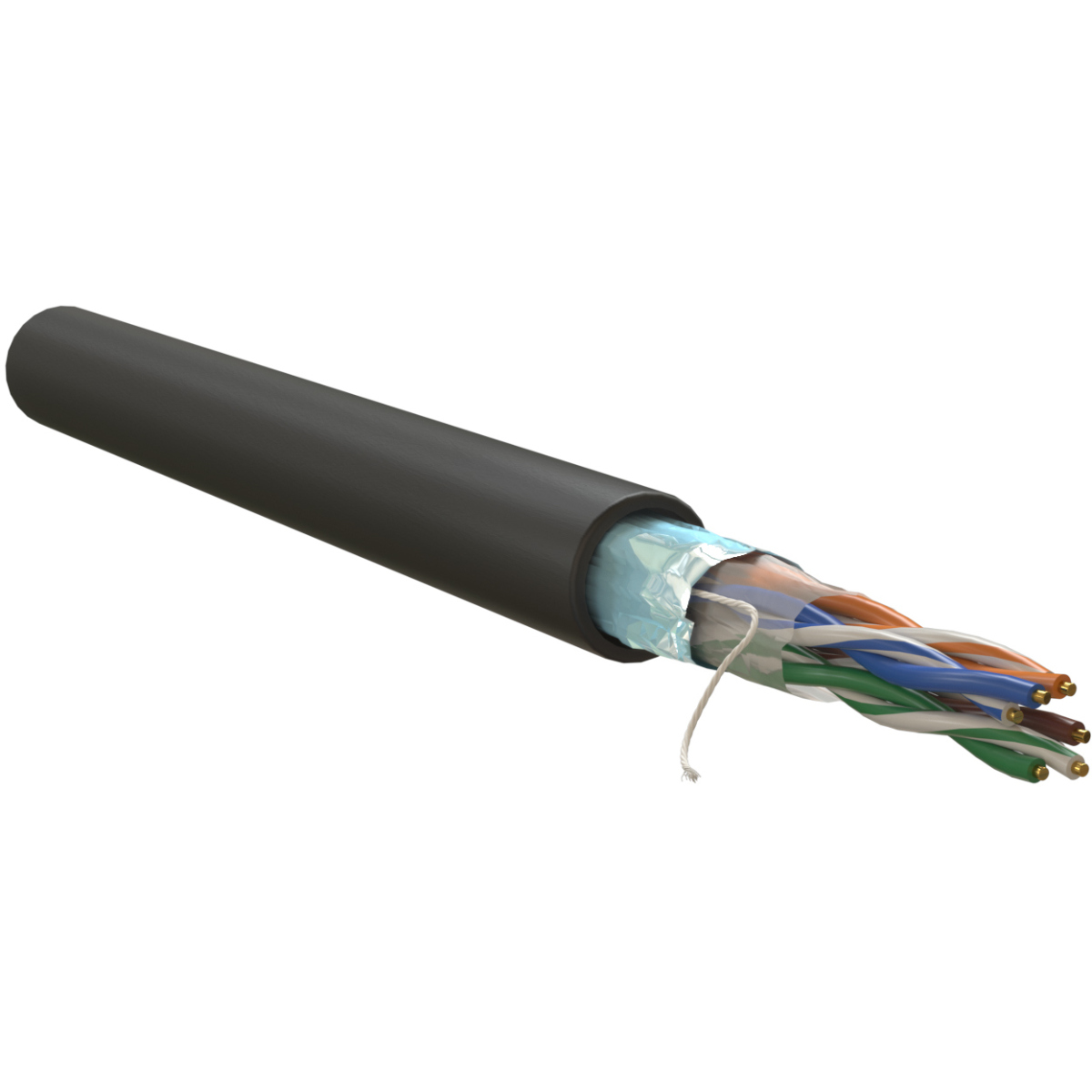 Кабель витая пара, экранированный F/UTP, категория 5e, 4 пары (0,50 мм), одножильный, внешний, PE, черный, 305 м