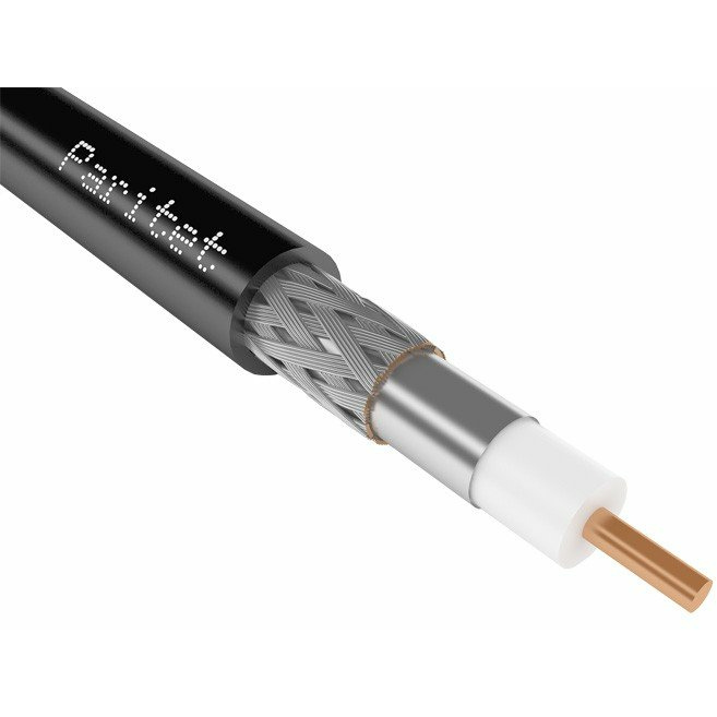 Коаксиальный кабель. Волновое сопротивление 75 ± 5 Ом с внутренним однопроволочным медным проводником D 1х1,63 мм. Внешний проводник (экран). алюминиевая фольга и оплетка медной луженой проволокой 60% .Оболочка светостабилизированный полиэтилена - СПЭ (для внешней прокладки), наружный диаметр кабеля 10,1 мм.