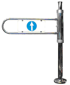 Калитки предназначены для формирования потоков людей в супермаркетах и на проходных. Особенностью калитки является ее универсальность; калитка снабжена двумя фиксирующими устройствами, которые позволяют в условиях эксплуатации выбрать любой режим работы калитки: «проход закрыт», односторонний - «дуга открыта влево» или «дуга открыта вправо», двухсторонний. Дуга прикреплена к вращающейся поворотной трубе, а стойка калитки неподвижна. Ширина перекрываемого прохода - 855мм. Допустимые статические усилия на середине преграждающей дуги, не более - 60кгс. Рабочий температурный диапазон - от + 1 C до + 50 C. Дуга в комплект поставки не входит и приобретается отдельно.