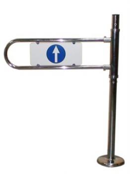 Калитка правая К11М предназначена для формирования потоков людей в супермаркетах и на проходных. Особенностью калитки является то, что дуга прикреплена к вращающейся трубе, а стойка калитки неподвижна; это позволяет стыковать ограждения непосредственно к стойке калитки. В отличие от калитки К11 калитка К11М имеет одинаковый диаметр стойки и средней поворотной части. Дуга в комплект поставки не входит и приобретается отдельно.