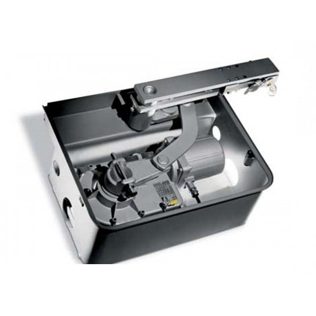 Простой в использовании, компактный и в тоже время надежный привод будет абсолютно незаметен на воротах до 3,5 метров и весом до 800 кг, так как его установка производится под землей. Это большой плюс, поскольку не портит внешнего вида. Корпус привода произведен из гальванической стали, водонепроницаем и абсолютно безопасен: на электродвигатель подается низкое напряжение в 24 В. Есть возможность снарядить привод резервным источником питания, установив его в корпус. Прочная и износостойкая конструкция, отсутствие необходимости в техническом обслуживании – все это свойственно новому приводу, выпускаемому со специальным монтажным основанием из стали с антикоррозионным покрытием (Frog-BN). Бесшумная система - самоблокирующаяся. Состав комплекта. FROG-A24 Привод 24В рычажный подземной установки Максимальный класс защиты IP67 2. FROG-CF Корпус привода для FROG-A, FROG-A24 2. A4364 Разблокировка для FROG-A, FROG-A24 2. ZL19N Блок управления с расширенным набором функций 1. Класс защиты IP54. Электропитание (В) (50-60Гц) ~ 230 В. Электропитание двигателя (В) ~ 24 В. Максимальный потребляемый ток (А) 15 макс.. Мощность (Вт) 180. Время открытия до 90°(сек) 16 ÷ 45. Интенсивность использования (%) интенсивного использования. Макс.вращающий момент 320. Диапазон рабочих температур (°C) -20 ÷ +55